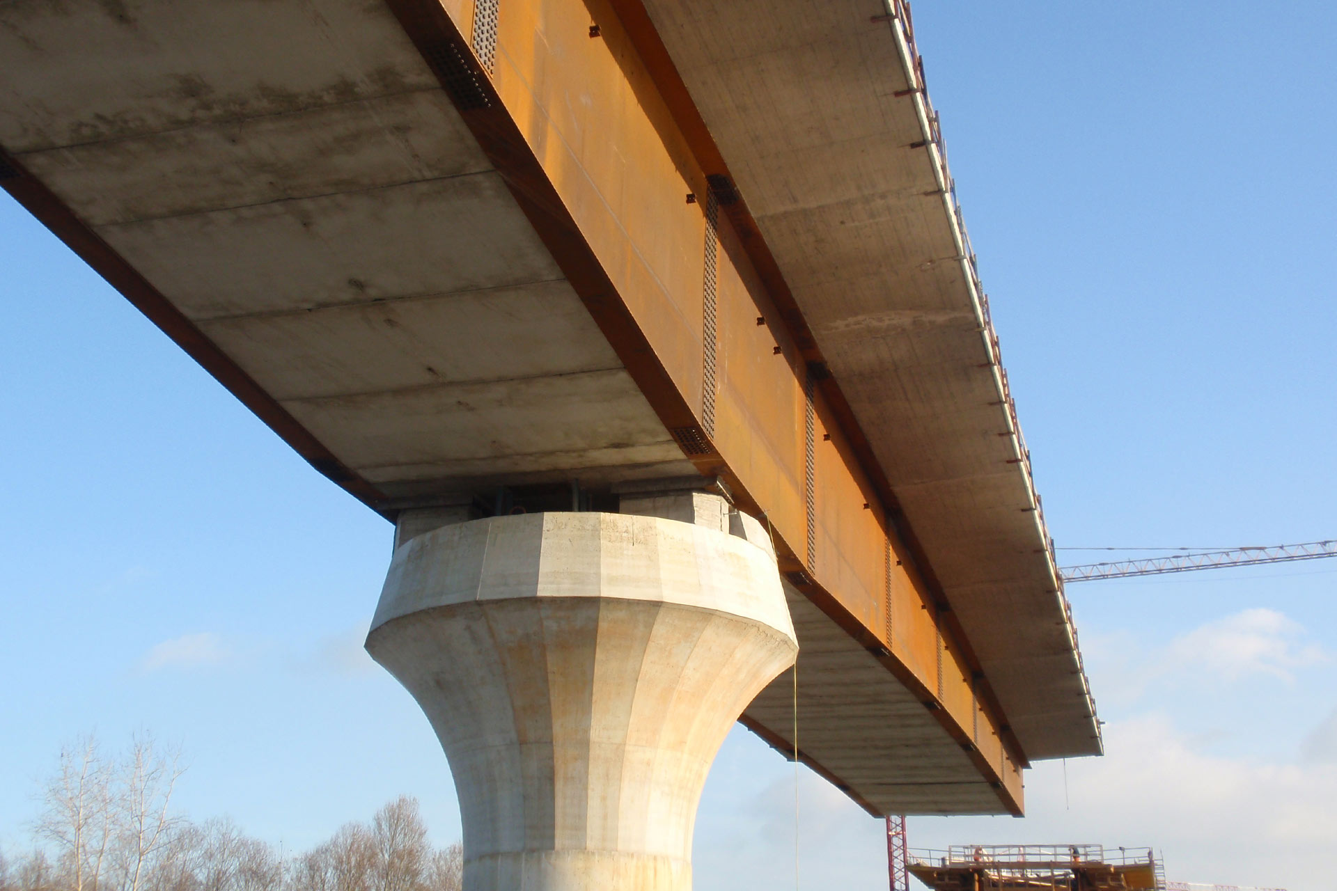Le pont, construit dans une structure mixte, avec des poutres latérales en acier et des dalles supérieures et inférieures en béton, enjambe le fleuve Pô, et a été construit sur piles jusqu'à 15 m de haut, avec des travées d'une portée maximale de 92 m.